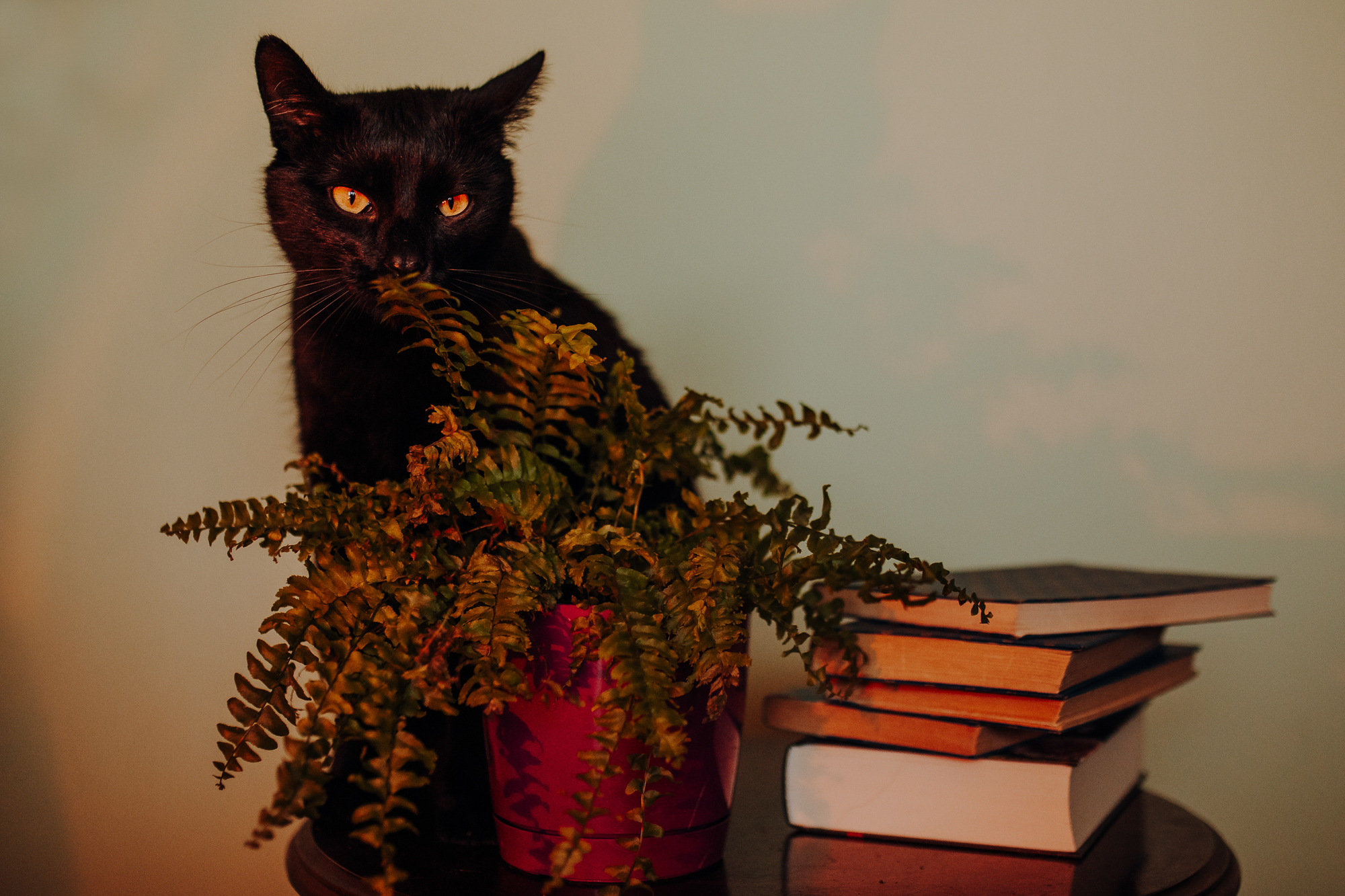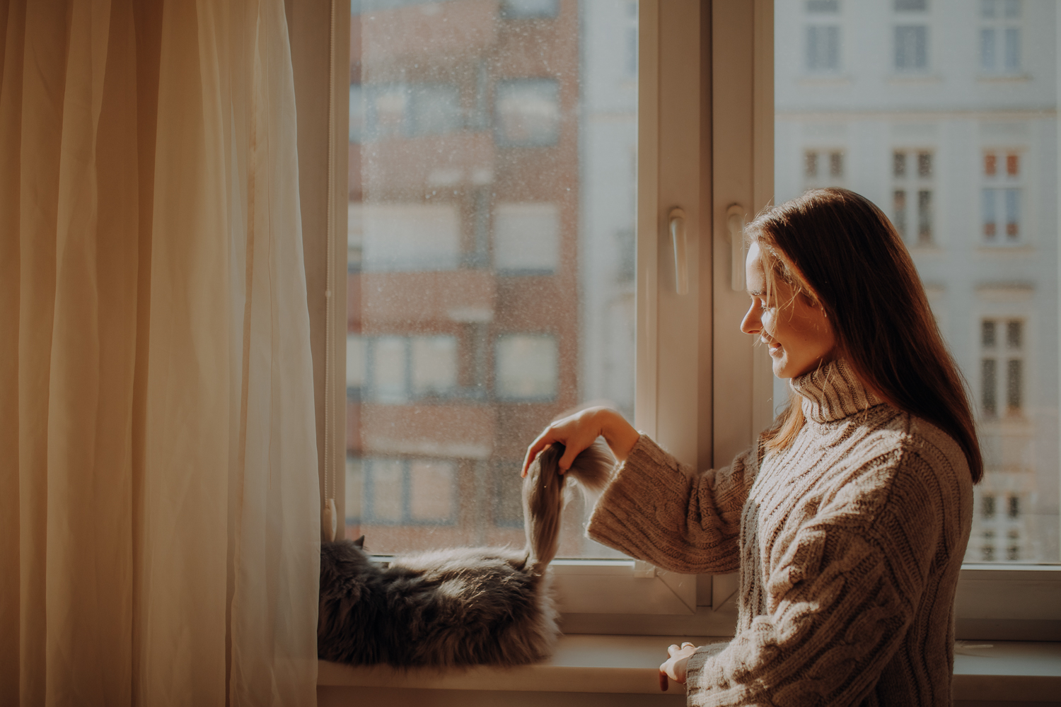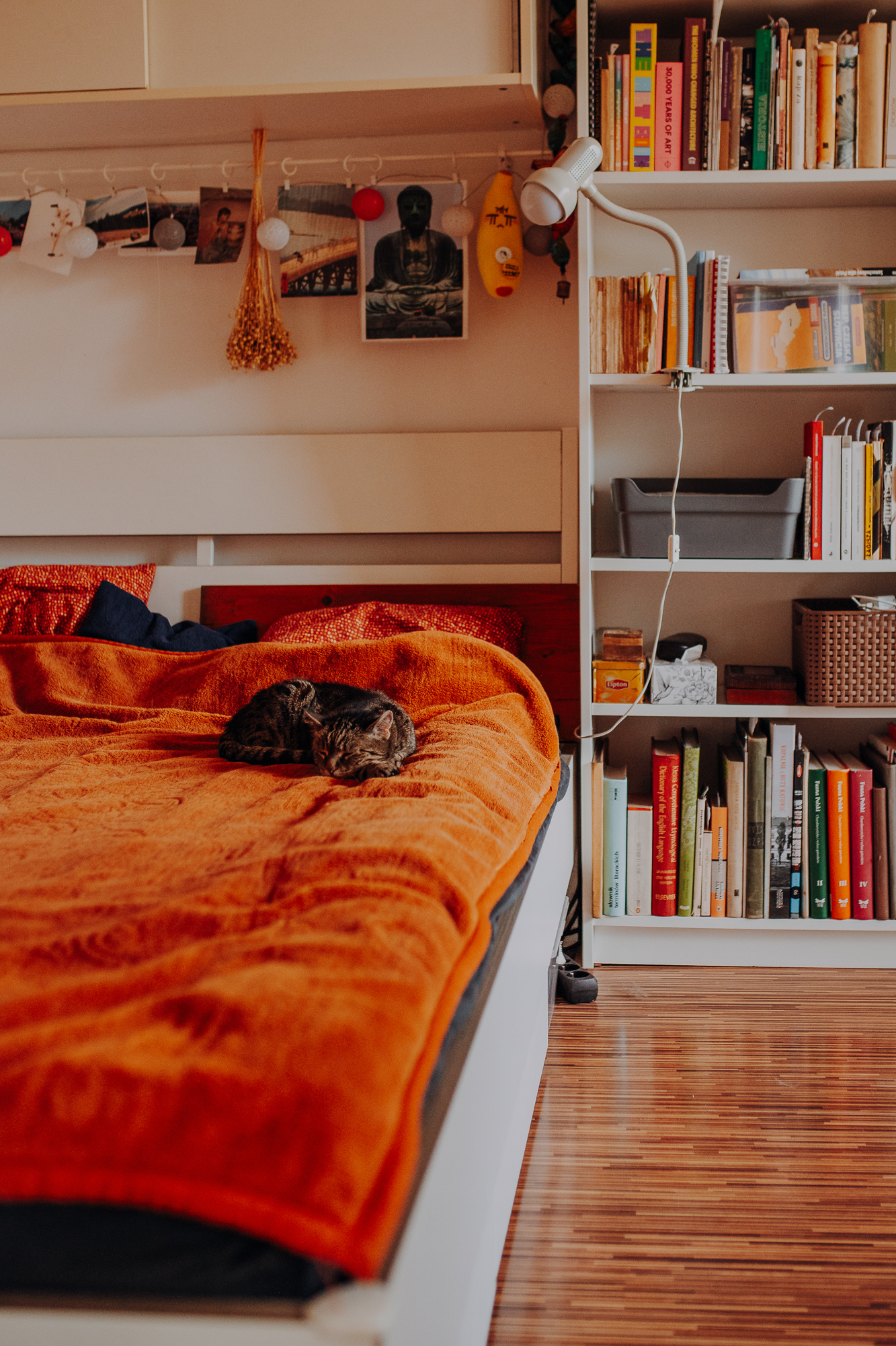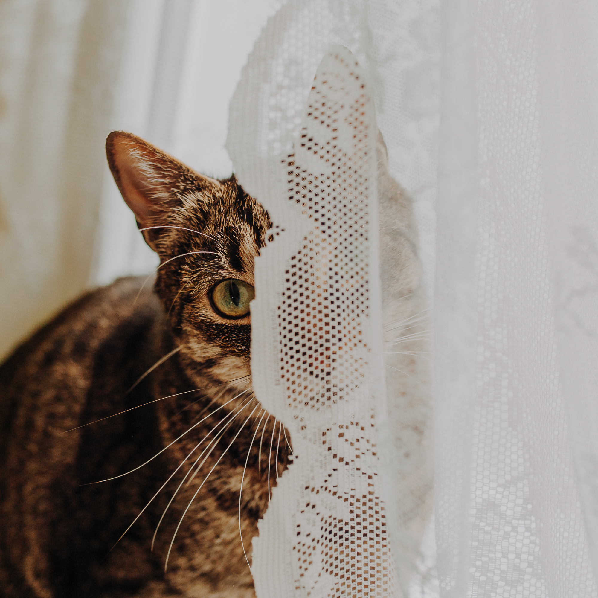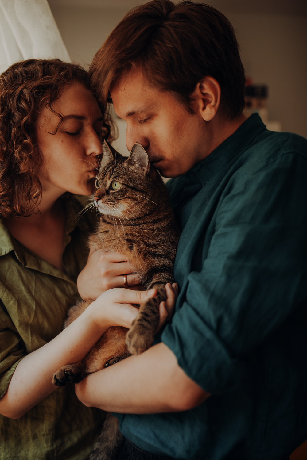 Magda mnie uprzedziła, że Leoś początkowo może mną wzgardzić, a Bonaparte przyglądać mi się jedynie z boku i obserwować, czy w ogóle opłaca mu się do mnie podejść. Na szczęście miałam ze sobą MAGICZNE PIÓRKA które bardzo szybko przekonały wszystkie koty do współpracy. Magisterka, która wyszła już do mnie na samym początku - żeby obwąchać moją torbę też była zainteresowana nową zabawką. Zdjęcia z wędką robiłyśmy głównie na hamaku, więc kotki mogły poczuć się jak prawdziwe tarzany, gdy wspinały się po jego niestabilnej konstrukcji.