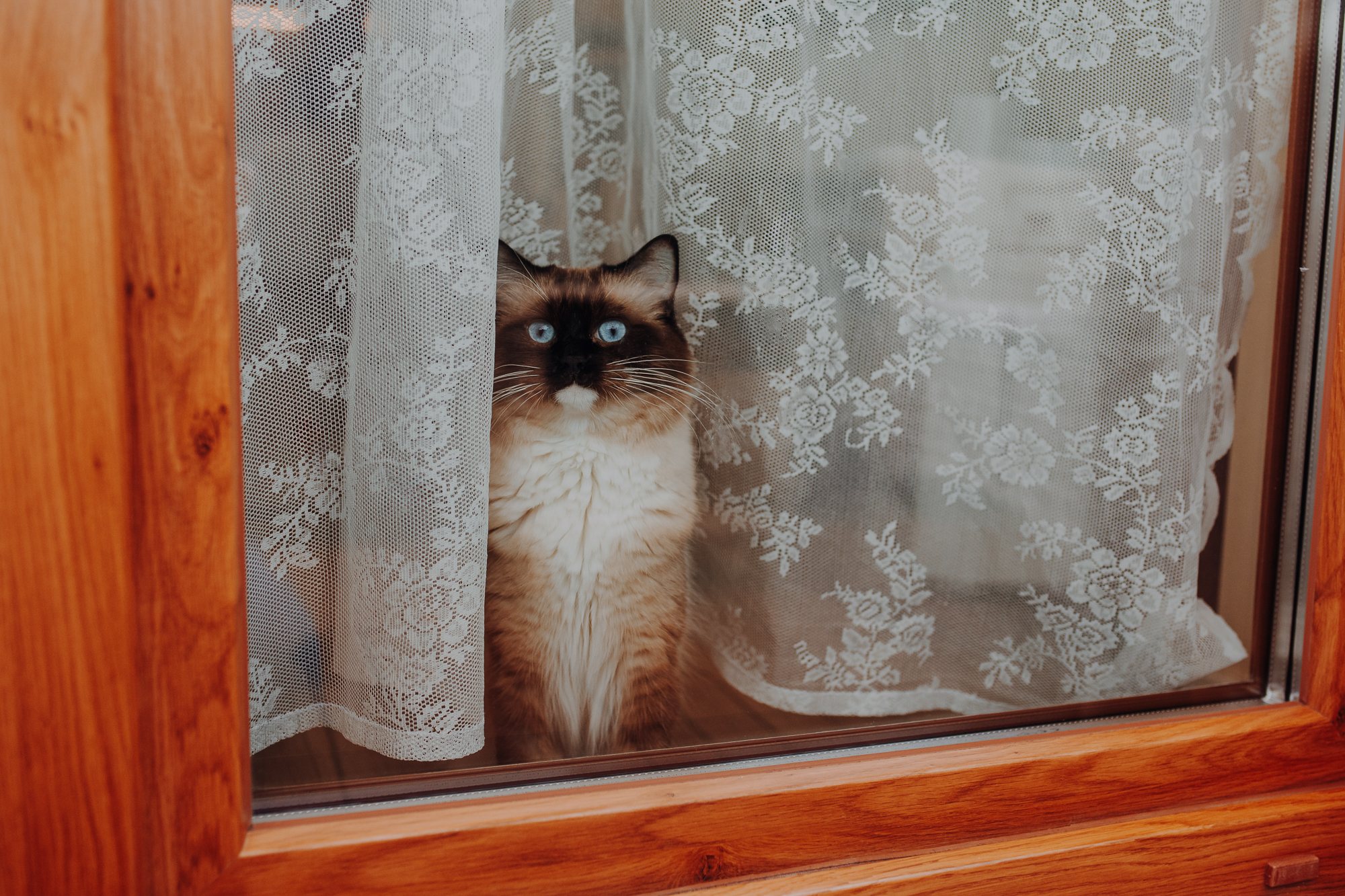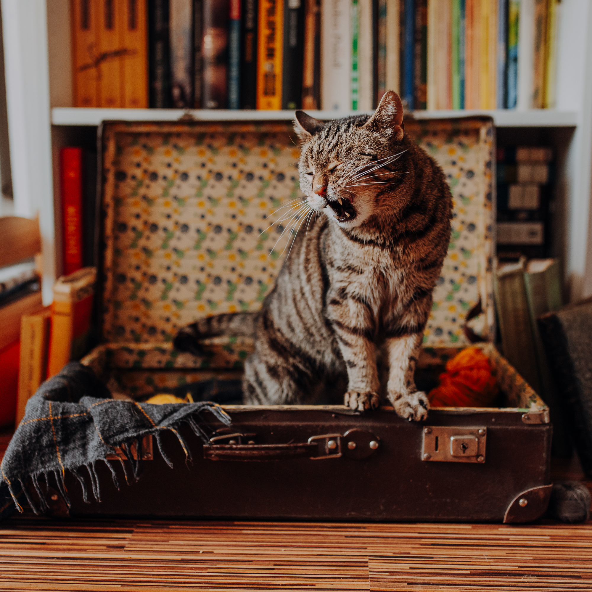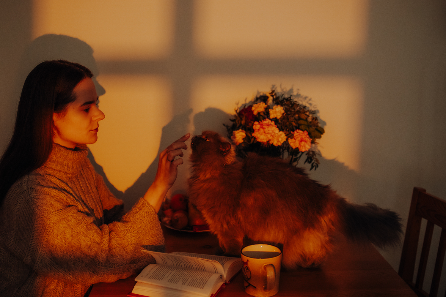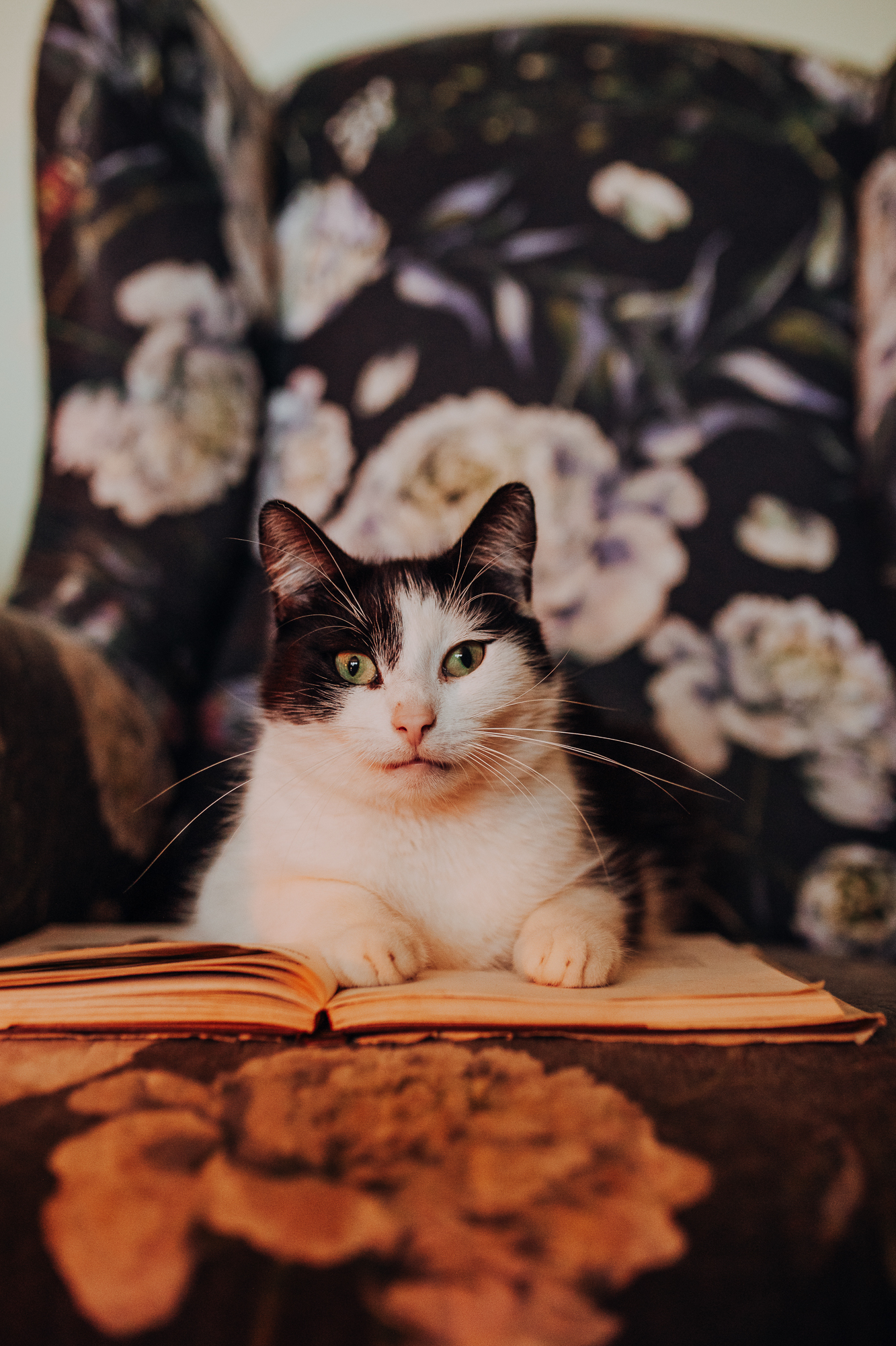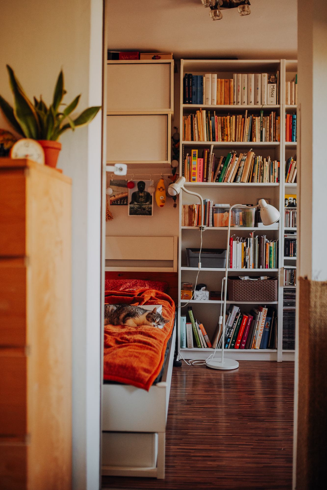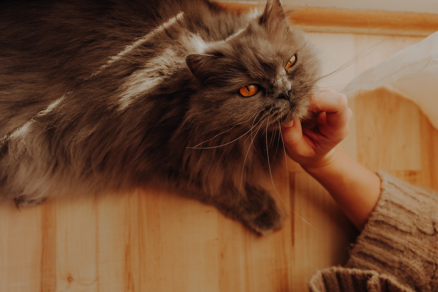 Magda mnie uprzedziła, że Leoś początkowo może mną wzgardzić, a Bonaparte przyglądać mi się jedynie z boku i obserwować, czy w ogóle opłaca mu się do mnie podejść. Na szczęście miałam ze sobą MAGICZNE PIÓRKA które bardzo szybko przekonały wszystkie koty do współpracy. Magisterka, która wyszła już do mnie na samym początku - żeby obwąchać moją torbę też była zainteresowana nową zabawką. Zdjęcia z wędką robiłyśmy głównie na hamaku, więc kotki mogły poczuć się jak prawdziwe tarzany, gdy wspinały się po jego niestabilnej konstrukcji.