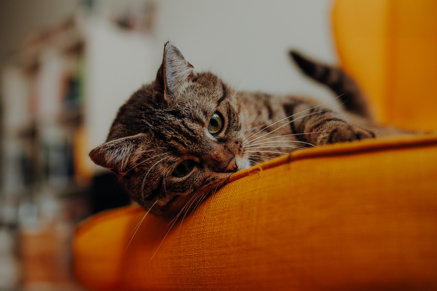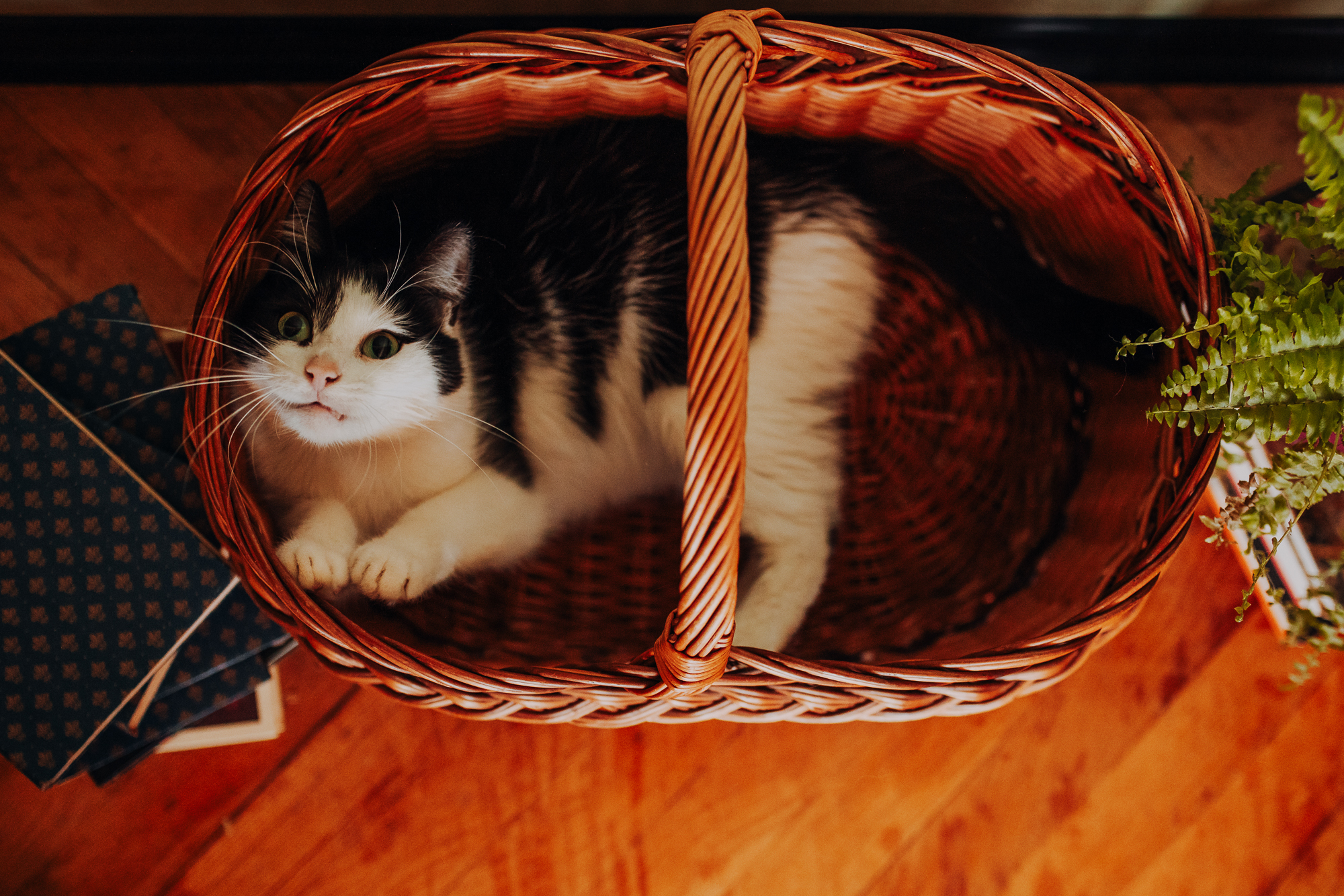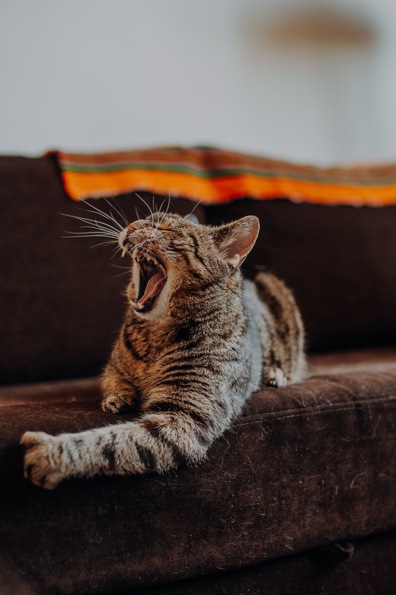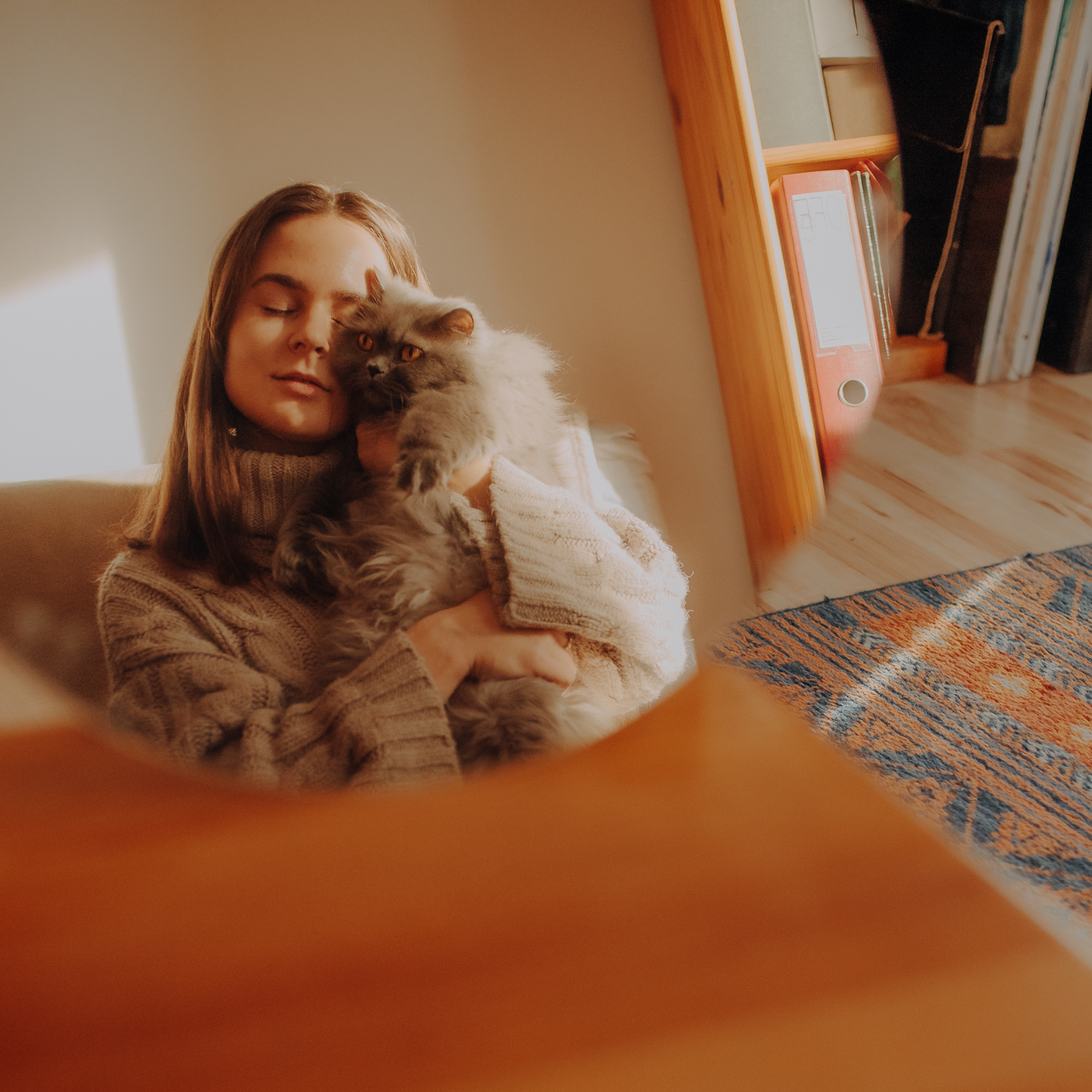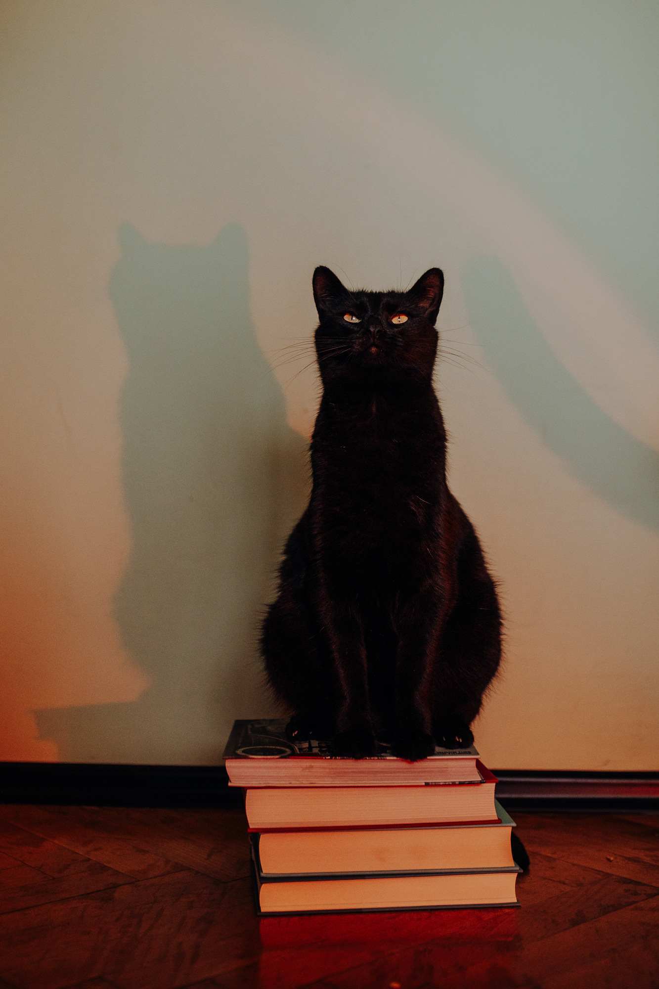 Magda mnie uprzedziła, że Leoś początkowo może mną wzgardzić, a Bonaparte przyglądać mi się jedynie z boku i obserwować, czy w ogóle opłaca mu się do mnie podejść. Na szczęście miałam ze sobą MAGICZNE PIÓRKA które bardzo szybko przekonały wszystkie koty do współpracy. Magisterka, która wyszła już do mnie na samym początku - żeby obwąchać moją torbę też była zainteresowana nową zabawką. Zdjęcia z wędką robiłyśmy głównie na hamaku, więc kotki mogły poczuć się jak prawdziwe tarzany, gdy wspinały się po jego niestabilnej konstrukcji.
