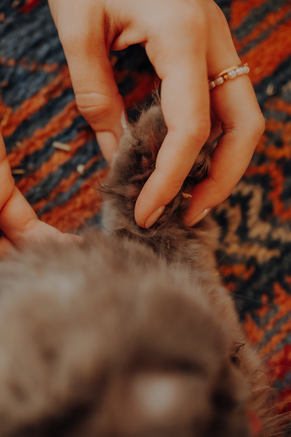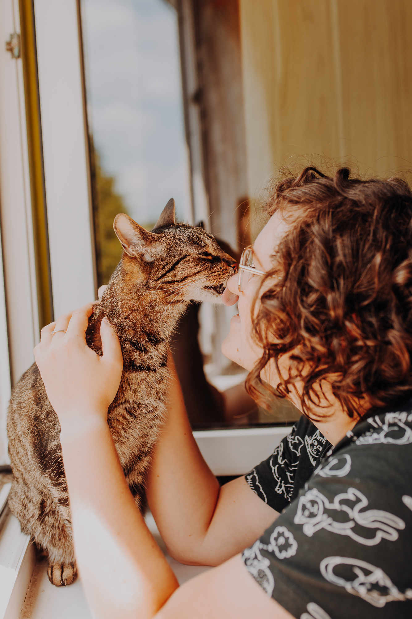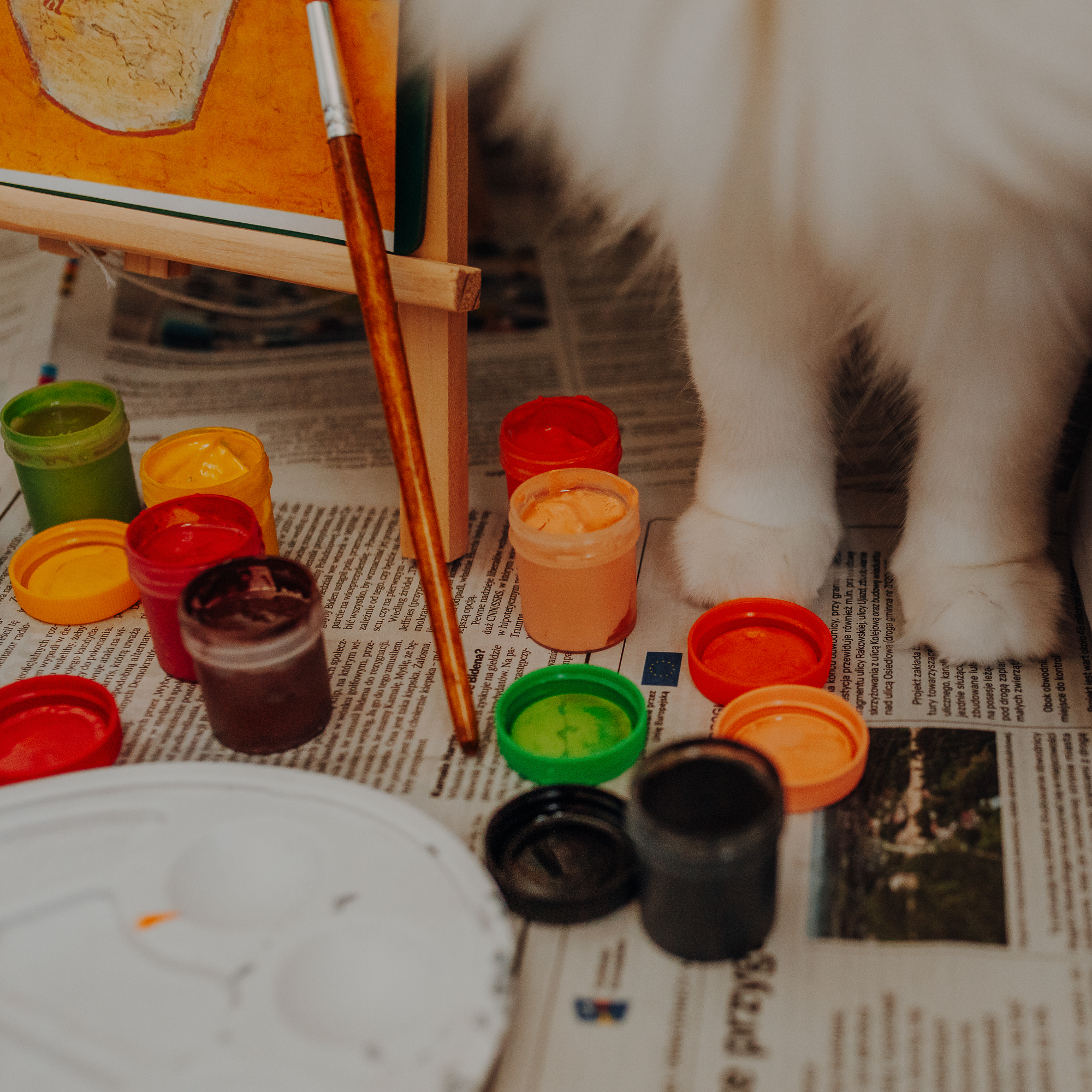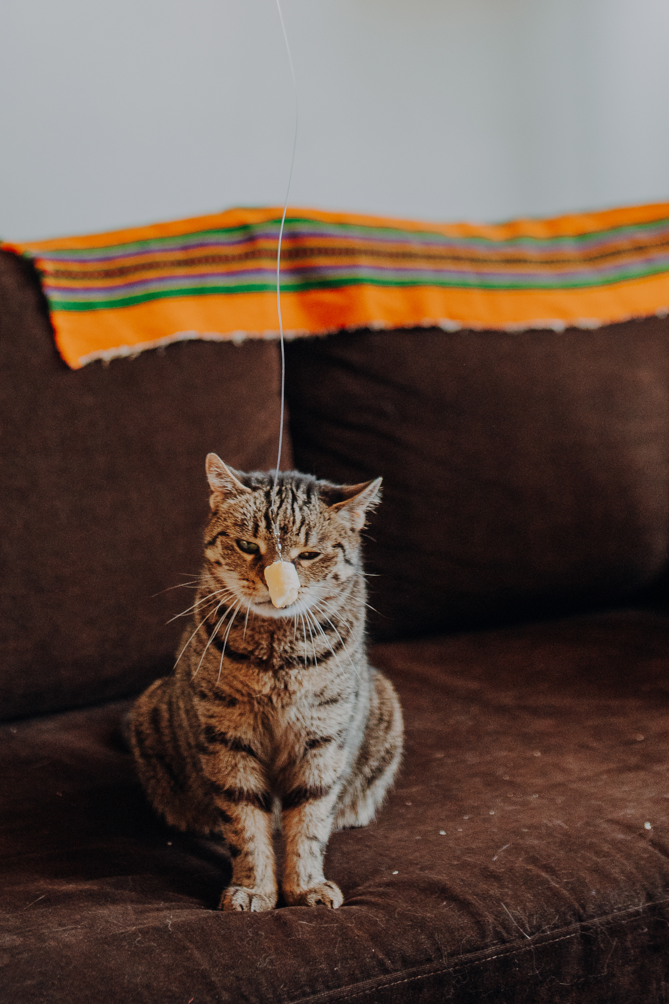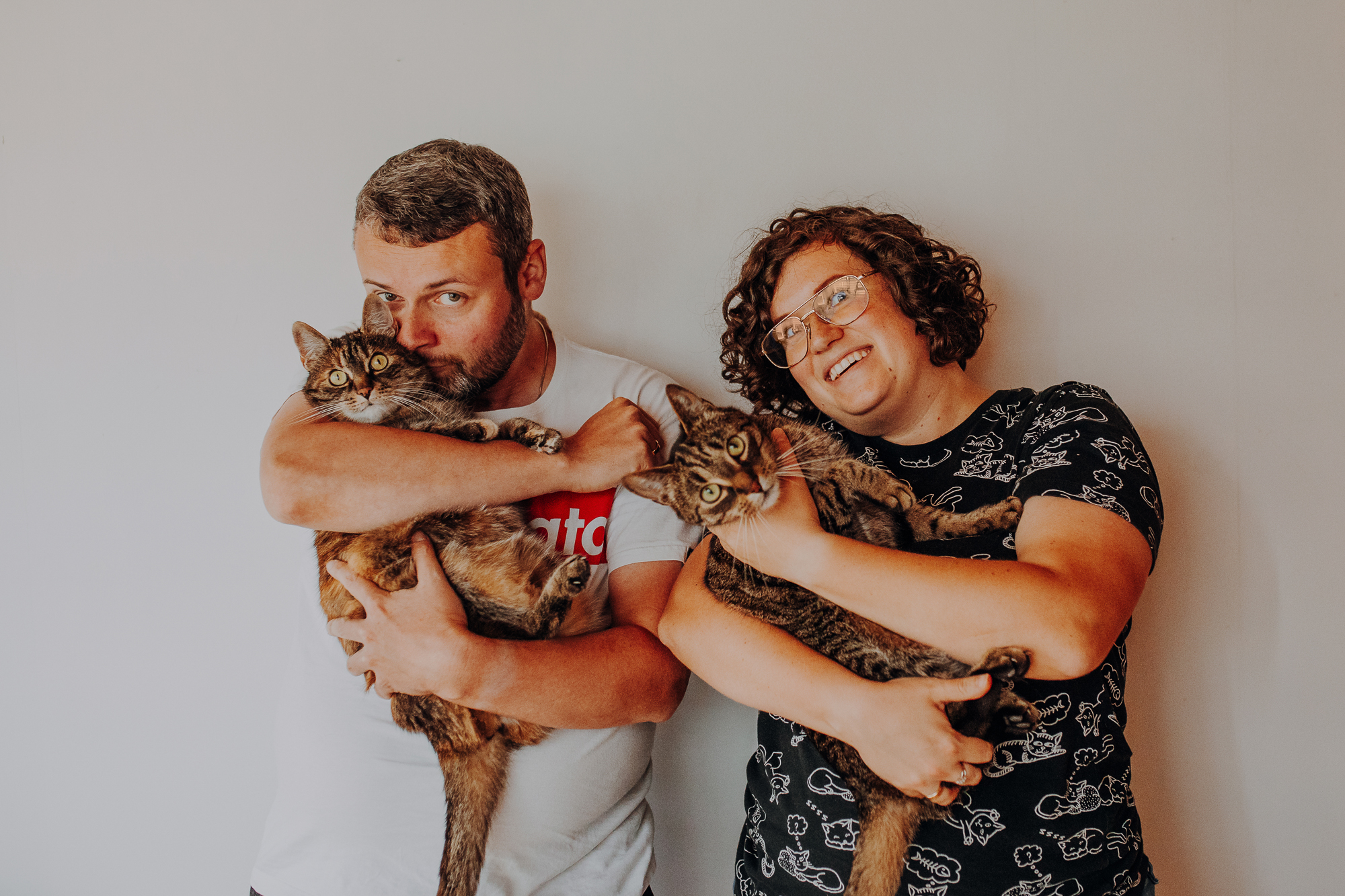 Na sesji u mnie często jest tak, że do pomocy mamy dużo rekwizytów. A to piórka długie, a to krótkie, a to cosma, a to... pasta.. I cóż czasami można się pogubić w tej ilości dobroci dla kotków. Byłyśmy w trakcie robienia wspólnych przytulankowych zdjęć na hamaku, gdy Magda zorientowała się, że nie ma pasty. Okazało się, że... na niej usiadła. Czasami takie rzeczy się u mnie zdarzają, czasami też śmieje się, że podczas sesji oznaczam wszystko pastą. A to tutaj spadnie kropelka, a to tam. Wiem, że to może brzmieć jak antyreklama, ale tak po prostu jest :D Przy pracy z kotami naprawdę ciężko jest wyjść z tego czystym, czy nie podrapanym, a już na pewno niemożliwe jest wyjście niezakłaczonym. ;D