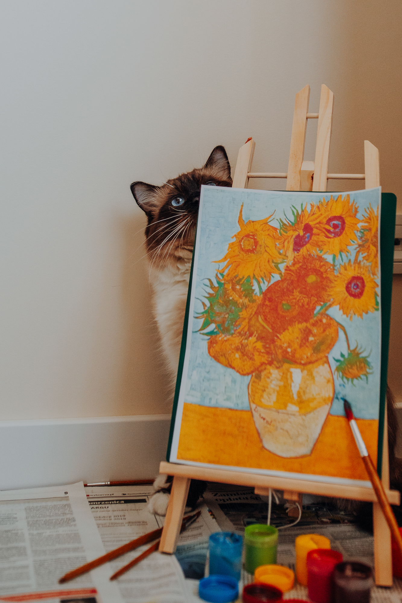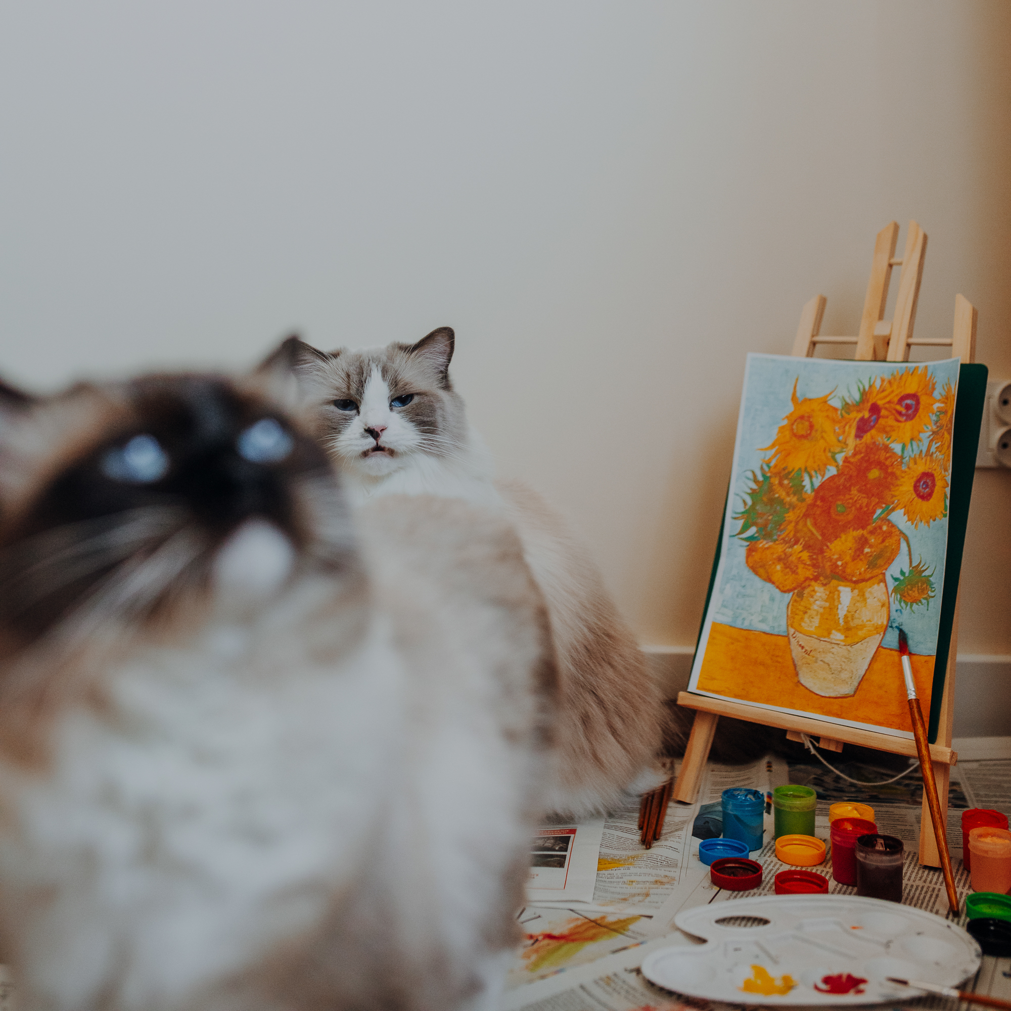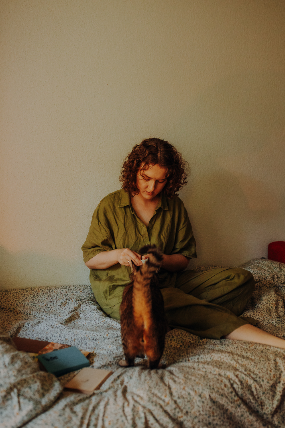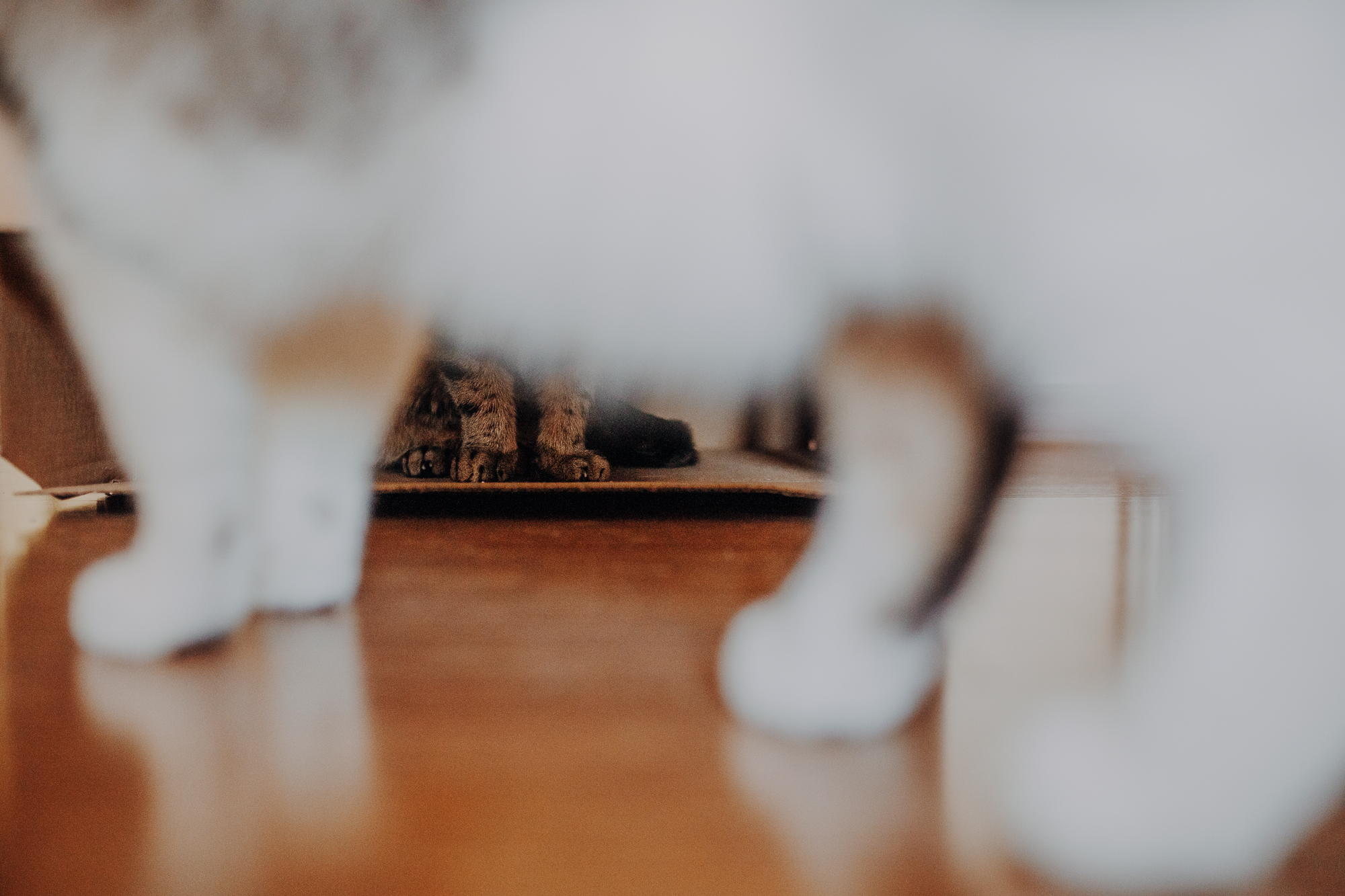 Na sesji u mnie często jest tak, że do pomocy mamy dużo rekwizytów. A to piórka długie, a to krótkie, a to cosma, a to... pasta.. I cóż czasami można się pogubić w tej ilości dobroci dla kotków. Byłyśmy w trakcie robienia wspólnych przytulankowych zdjęć na hamaku, gdy Magda zorientowała się, że nie ma pasty. Okazało się, że... na niej usiadła. Czasami takie rzeczy się u mnie zdarzają, czasami też śmieje się, że podczas sesji oznaczam wszystko pastą. A to tutaj spadnie kropelka, a to tam. Wiem, że to może brzmieć jak antyreklama, ale tak po prostu jest :D Przy pracy z kotami naprawdę ciężko jest wyjść z tego czystym, czy nie podrapanym, a już na pewno niemożliwe jest wyjście niezakłaczonym. ;D
