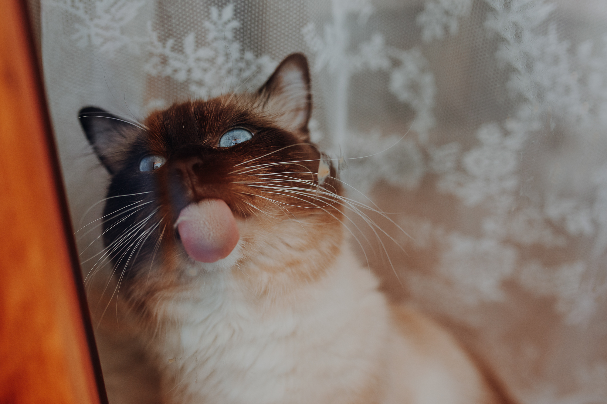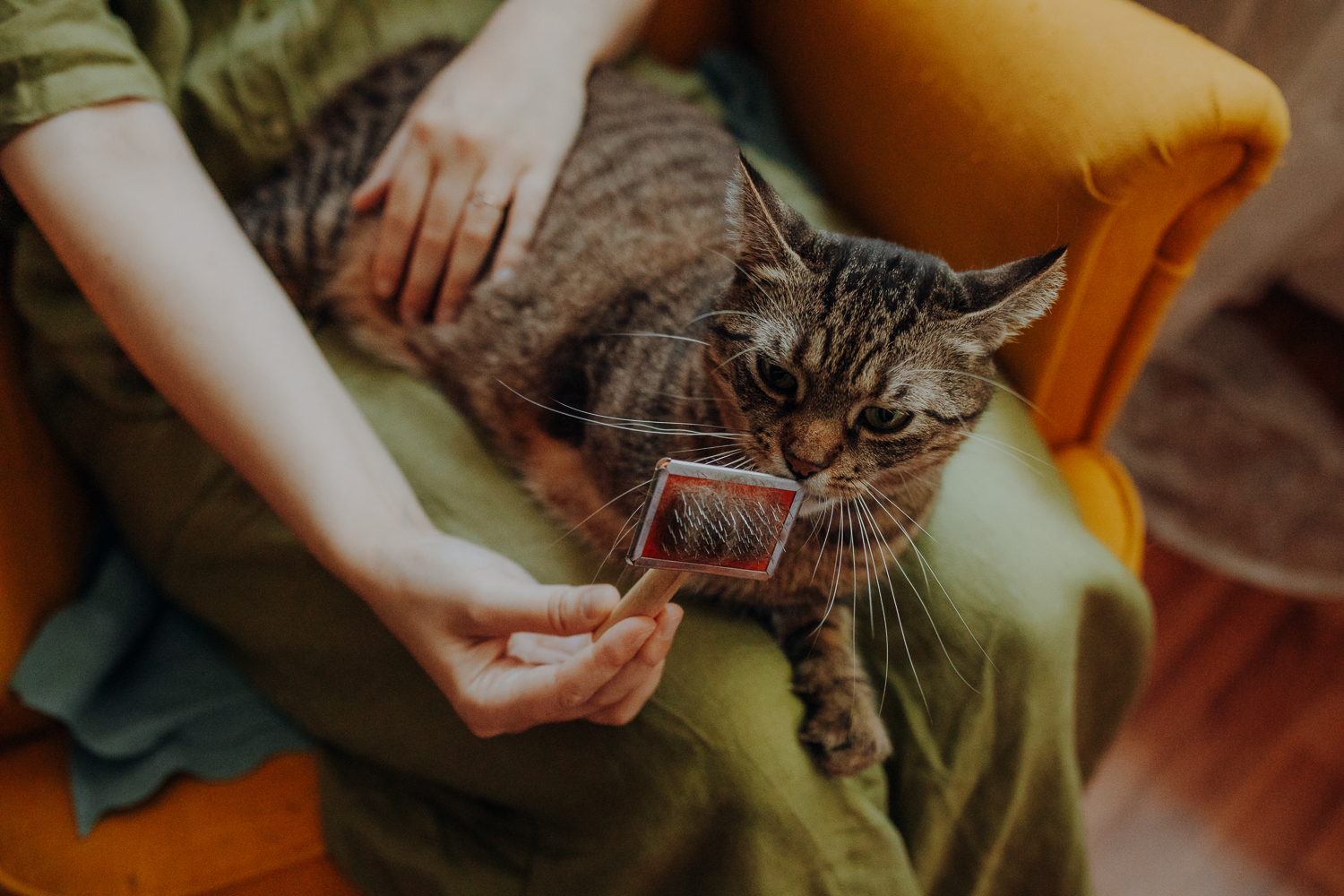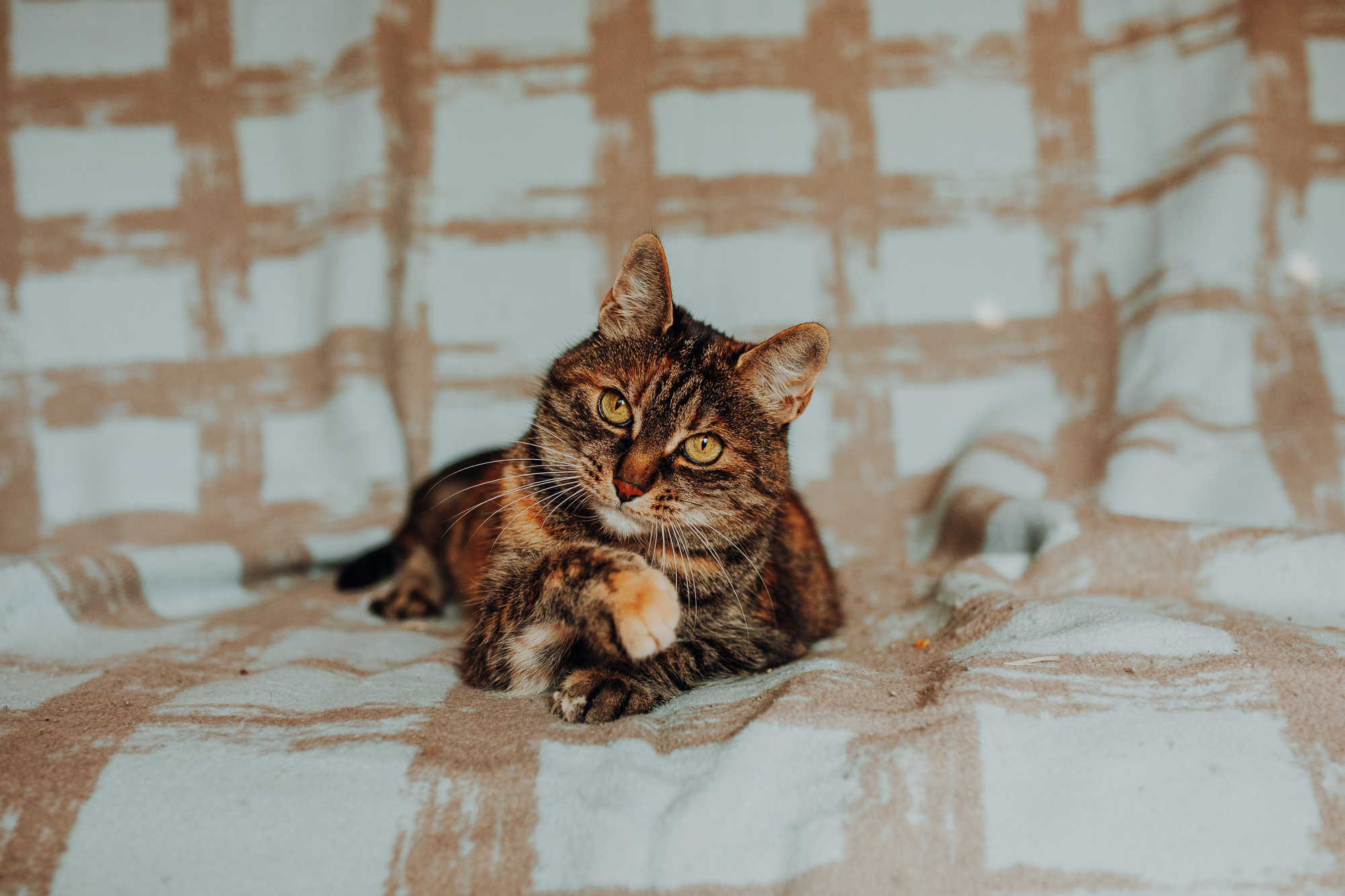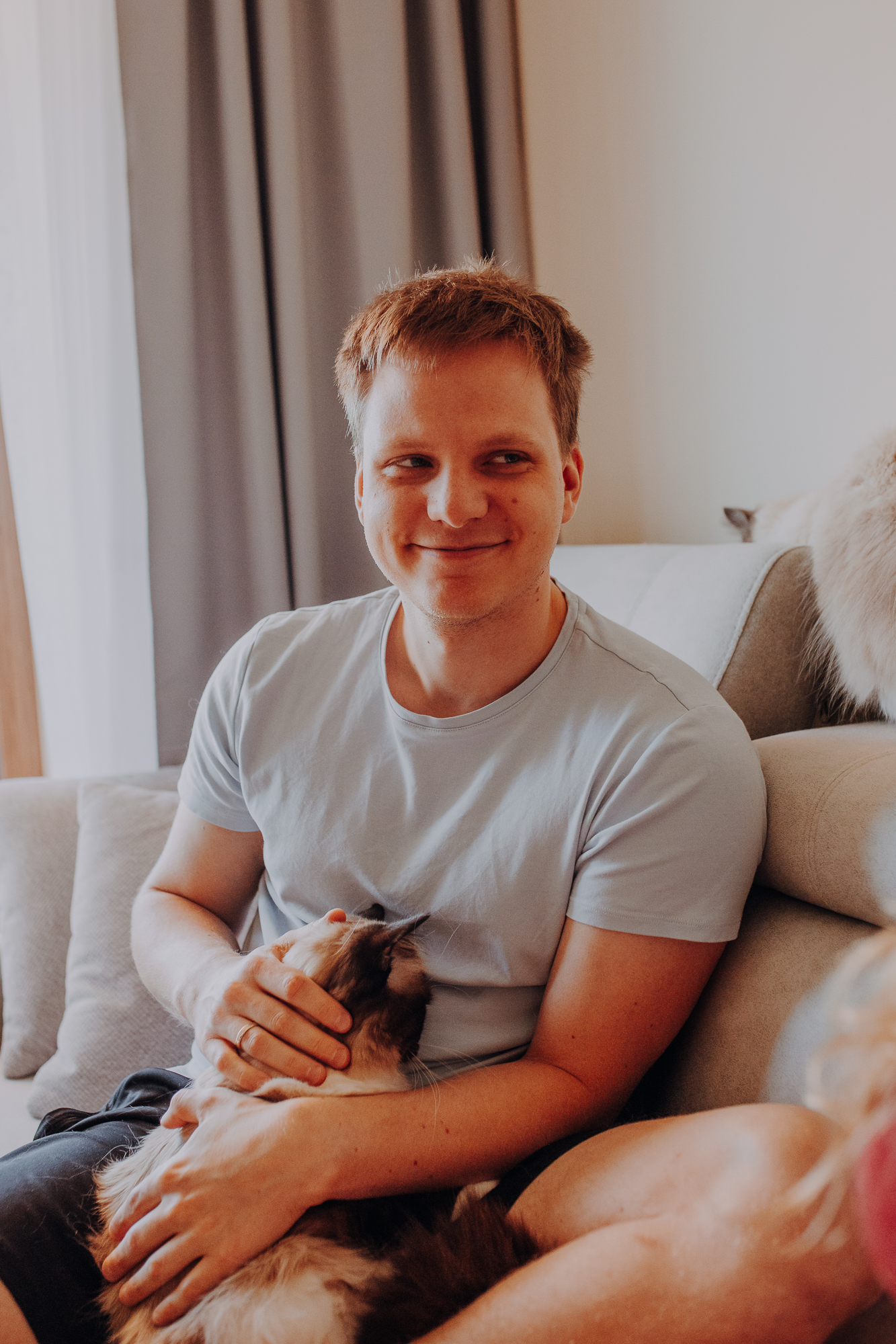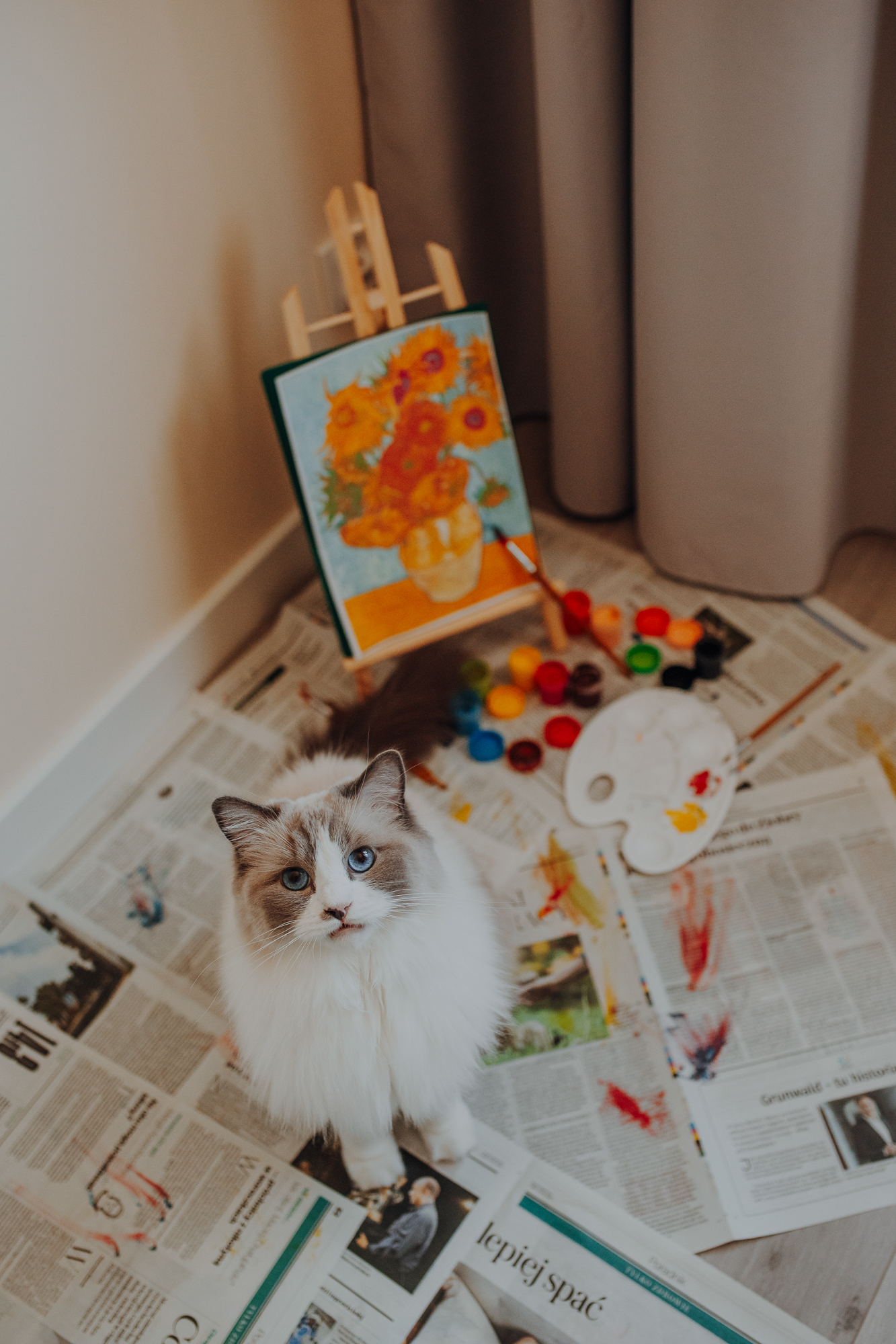 Na sesji u mnie często jest tak, że do pomocy mamy dużo rekwizytów. A to piórka długie, a to krótkie, a to cosma, a to... pasta.. I cóż czasami można się pogubić w tej ilości dobroci dla kotków. Byłyśmy w trakcie robienia wspólnych przytulankowych zdjęć na hamaku, gdy Magda zorientowała się, że nie ma pasty. Okazało się, że... na niej usiadła. Czasami takie rzeczy się u mnie zdarzają, czasami też śmieje się, że podczas sesji oznaczam wszystko pastą. A to tutaj spadnie kropelka, a to tam. Wiem, że to może brzmieć jak antyreklama, ale tak po prostu jest :D Przy pracy z kotami naprawdę ciężko jest wyjść z tego czystym, czy nie podrapanym, a już na pewno niemożliwe jest wyjście niezakłaczonym. ;D