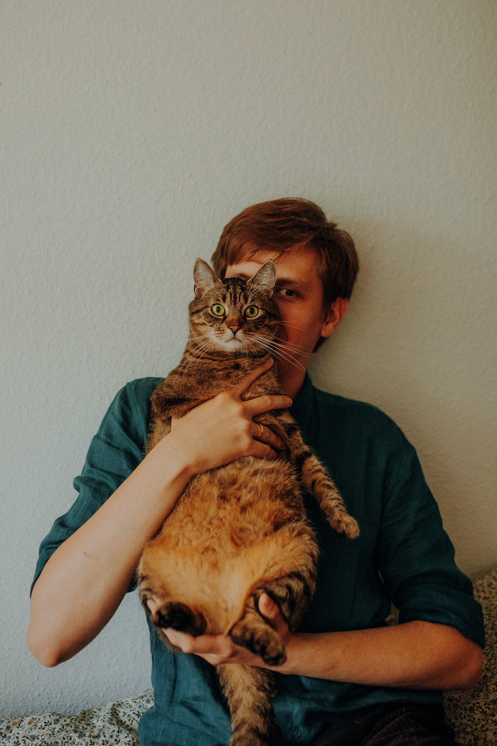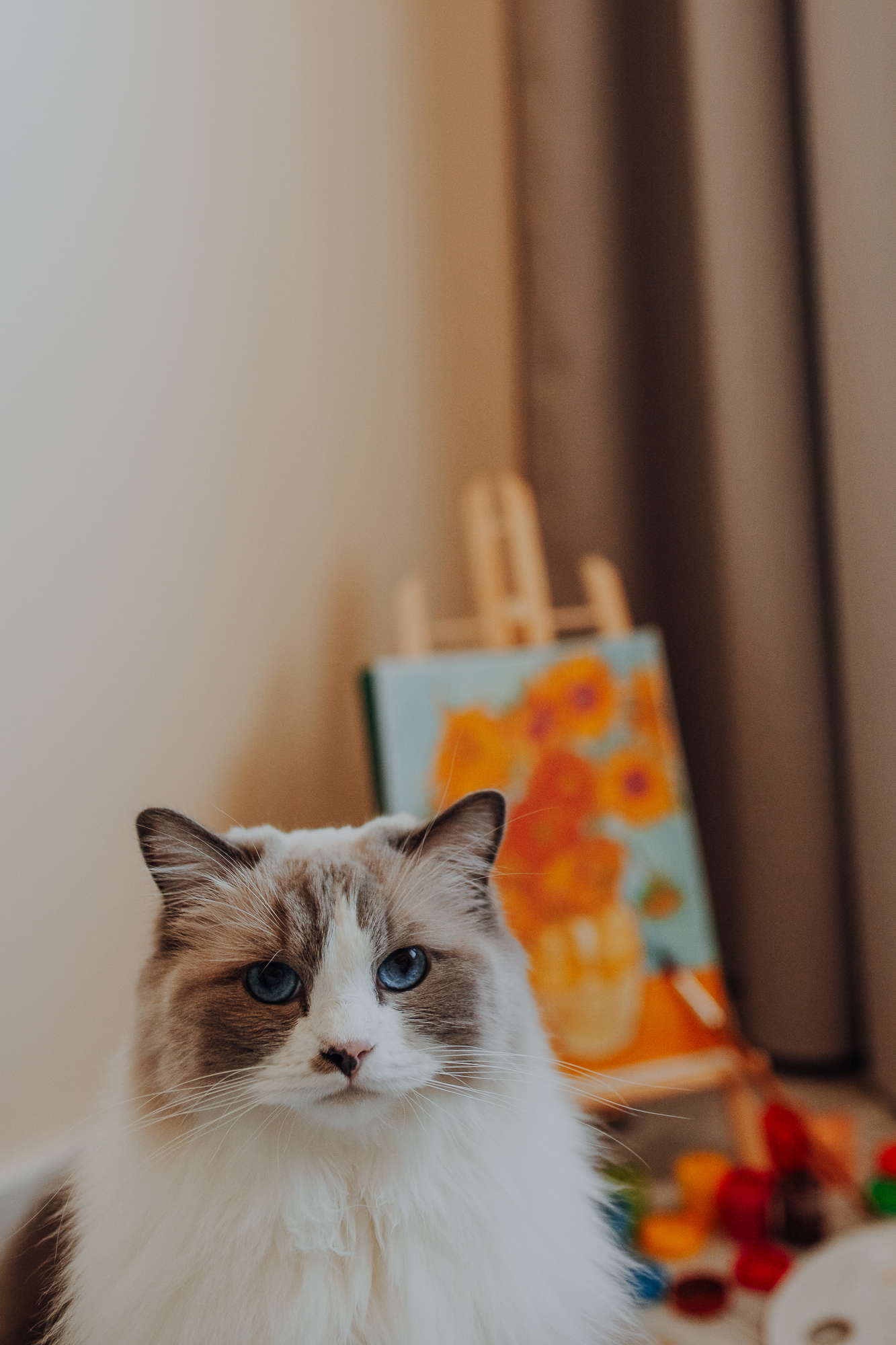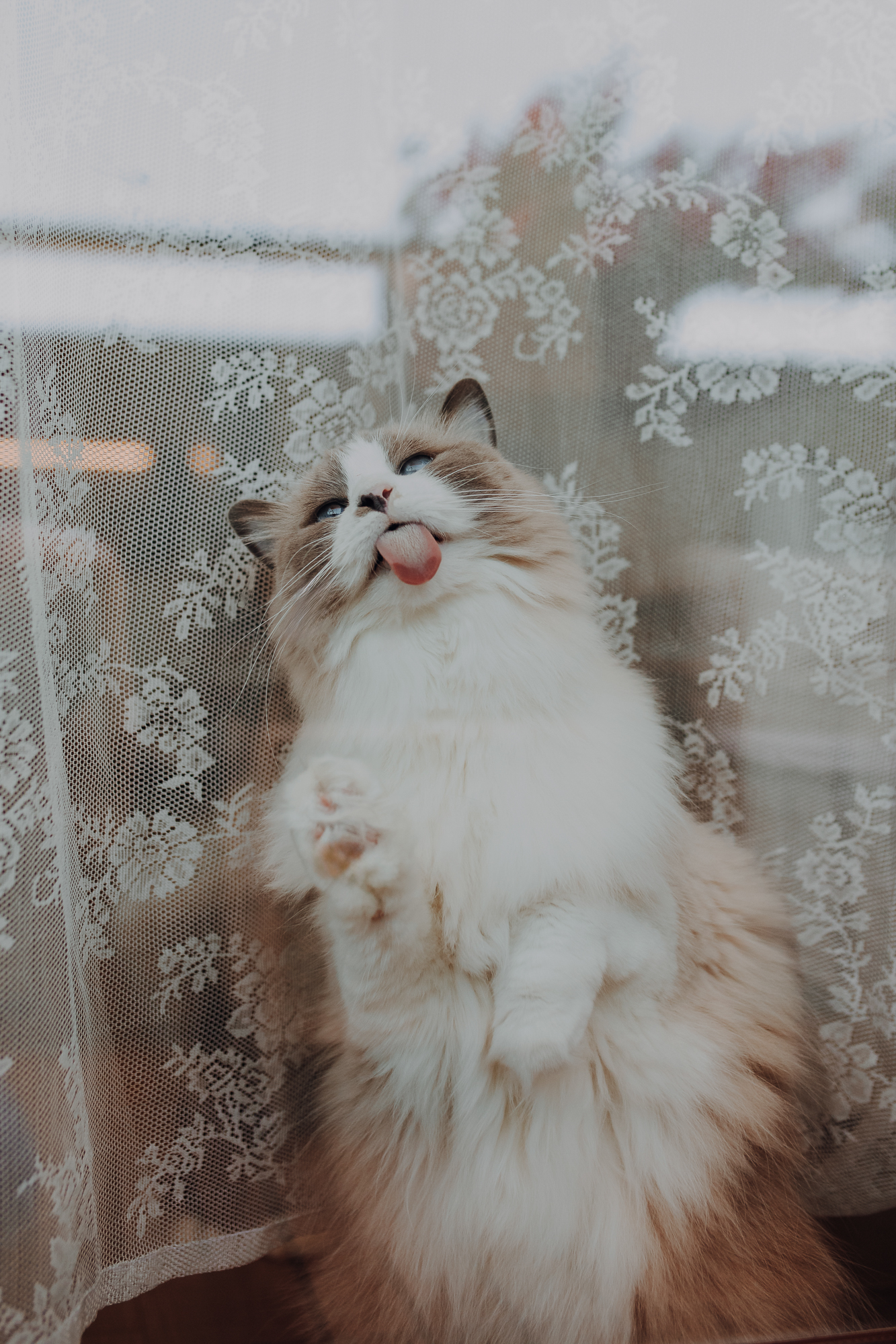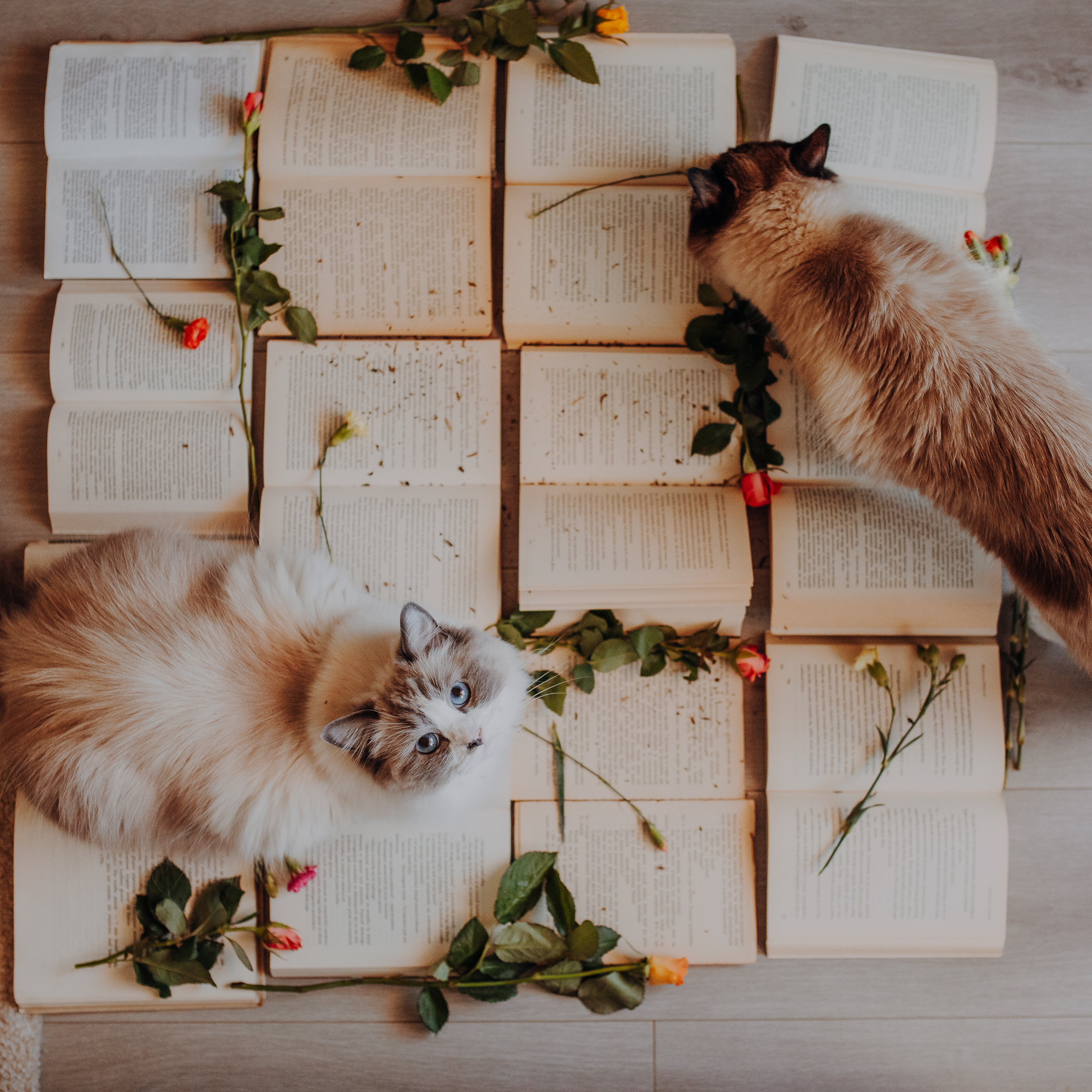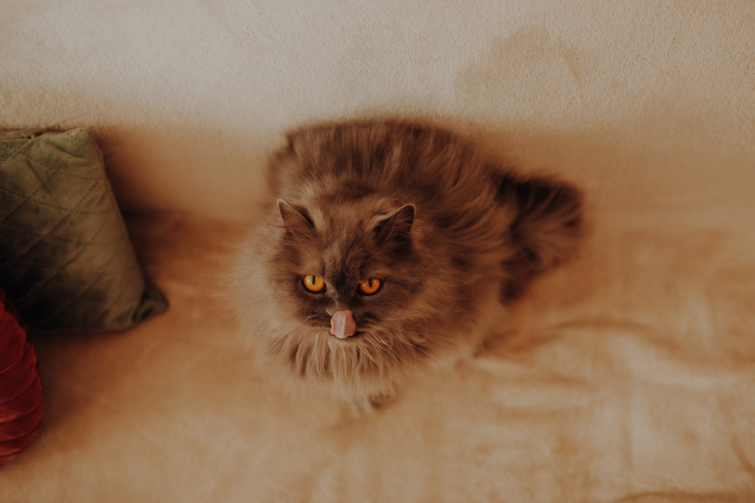 Na sesji u mnie często jest tak, że do pomocy mamy dużo rekwizytów. A to piórka długie, a to krótkie, a to cosma, a to... pasta.. I cóż czasami można się pogubić w tej ilości dobroci dla kotków. Byłyśmy w trakcie robienia wspólnych przytulankowych zdjęć na hamaku, gdy Magda zorientowała się, że nie ma pasty. Okazało się, że... na niej usiadła. Czasami takie rzeczy się u mnie zdarzają, czasami też śmieje się, że podczas sesji oznaczam wszystko pastą. A to tutaj spadnie kropelka, a to tam. Wiem, że to może brzmieć jak antyreklama, ale tak po prostu jest :D Przy pracy z kotami naprawdę ciężko jest wyjść z tego czystym, czy nie podrapanym, a już na pewno niemożliwe jest wyjście niezakłaczonym. ;D