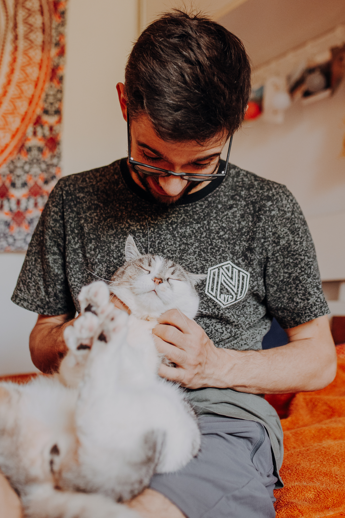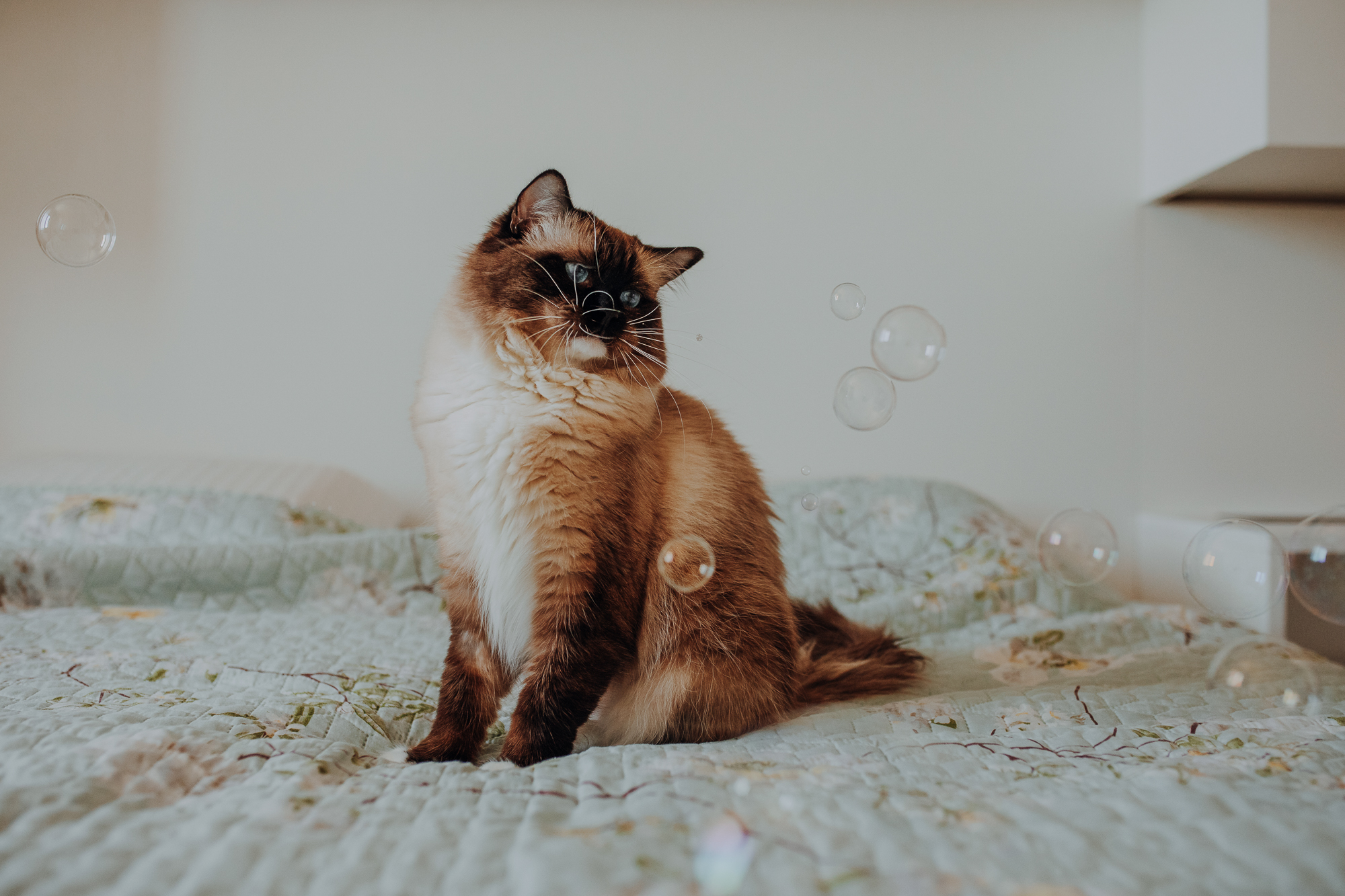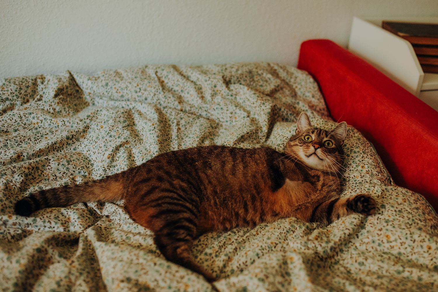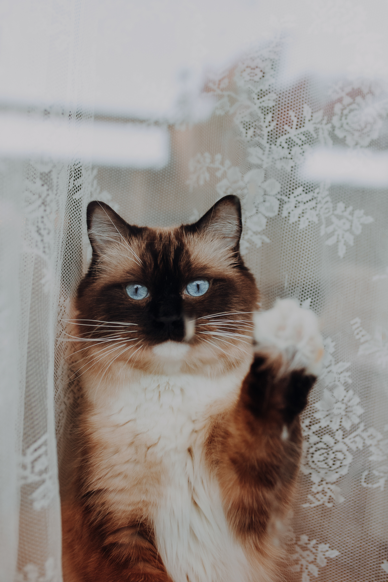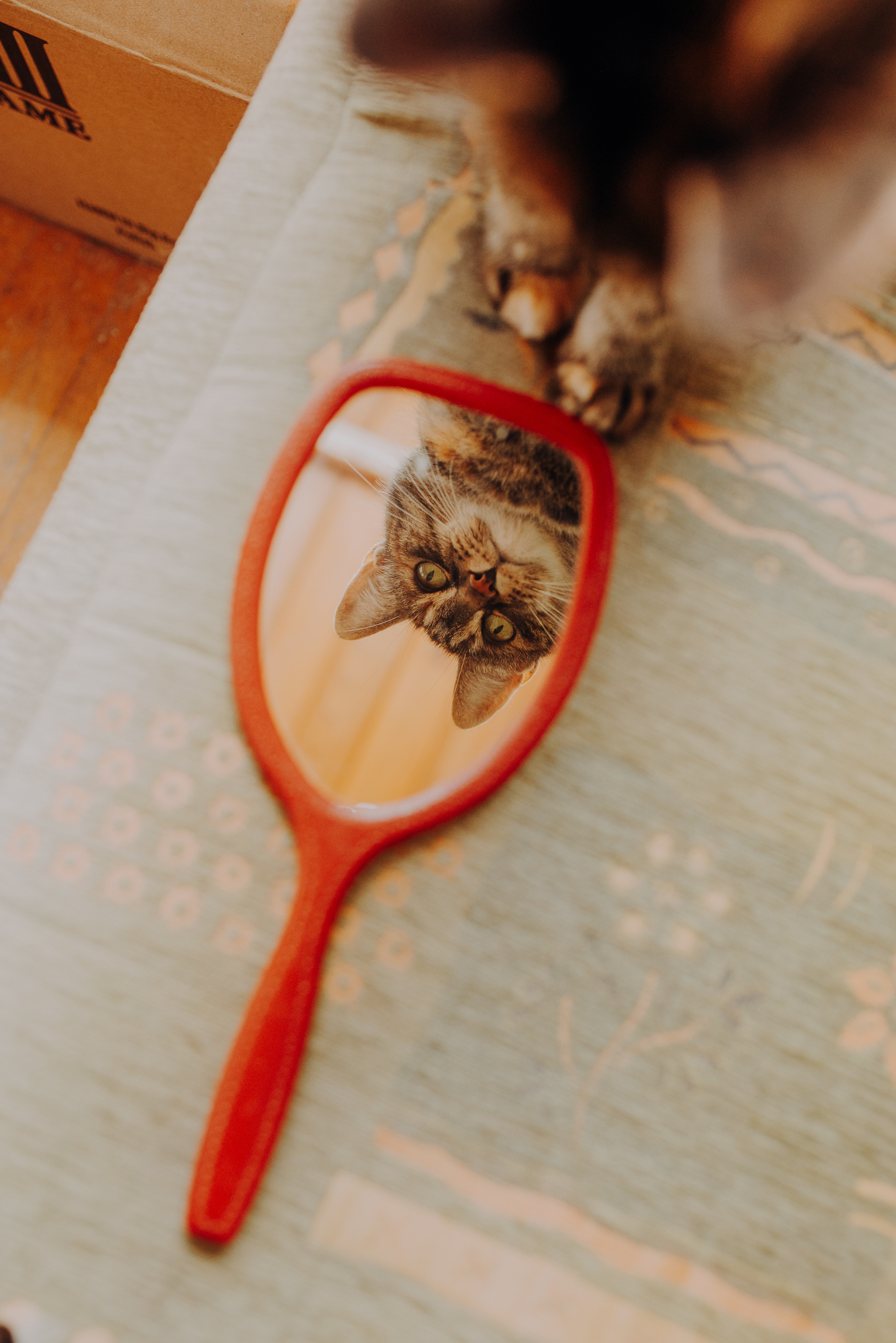 Na sesji u mnie często jest tak, że do pomocy mamy dużo rekwizytów. A to piórka długie, a to krótkie, a to cosma, a to... pasta.. I cóż czasami można się pogubić w tej ilości dobroci dla kotków. Byłyśmy w trakcie robienia wspólnych przytulankowych zdjęć na hamaku, gdy Magda zorientowała się, że nie ma pasty. Okazało się, że... na niej usiadła. Czasami takie rzeczy się u mnie zdarzają, czasami też śmieje się, że podczas sesji oznaczam wszystko pastą. A to tutaj spadnie kropelka, a to tam. Wiem, że to może brzmieć jak antyreklama, ale tak po prostu jest :D Przy pracy z kotami naprawdę ciężko jest wyjść z tego czystym, czy nie podrapanym, a już na pewno niemożliwe jest wyjście niezakłaczonym. ;D